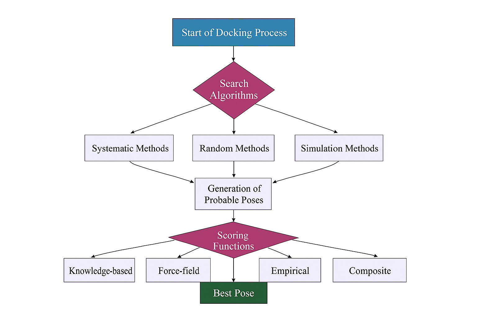 در این بخش، به دو مؤلفه‌ی اصلی در عملکرد نرم‌افزارهای داکینگ، یعنی الگوریتم‌های جست‌وجو (Search Algorithms) و توابع امتیازدهی (Scoring Functions) می‌پردازیم. این دو بخش اساس فرآیند داکینگ را تشکیل می‌دهند و دقت نتایج تا حد زیادی به کیفیت عملکرد آن‌ها وابسته است.